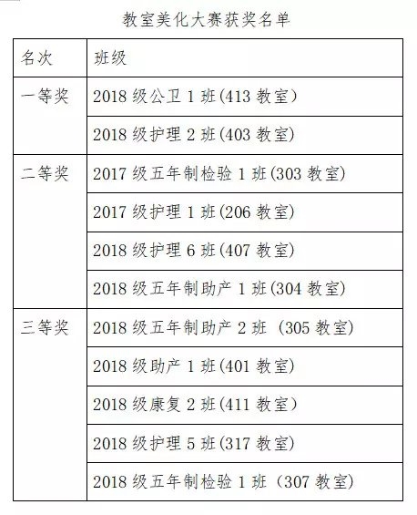 经过评比,最后共有11个班级分别荣获了一、二、三等奖。
