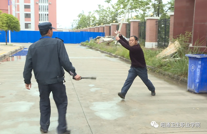 行进途中,该人员用在校内建筑工地捡拾的砖块、棍棒追打尾随其后的安保人员。