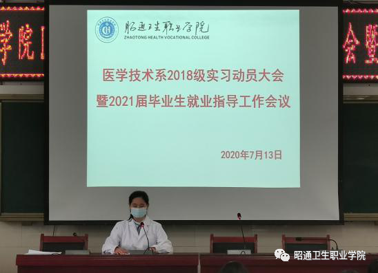 会上,医学技术系负责人刘昌亚介绍了专业实习的内容和意义,并对本次实习的具体任务、要求、注意事项、安全教育等方面做了重点强调,对学生关心的实习和就业问题做了解释,并为大家进行了就业指导。