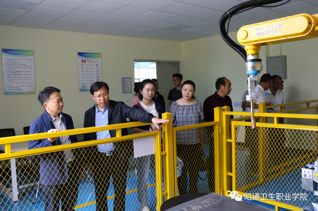 (贺飞一行参观了该校科技楼、实训楼、国家高技能人才培训基地、教学区、宿舍区、食堂等地)