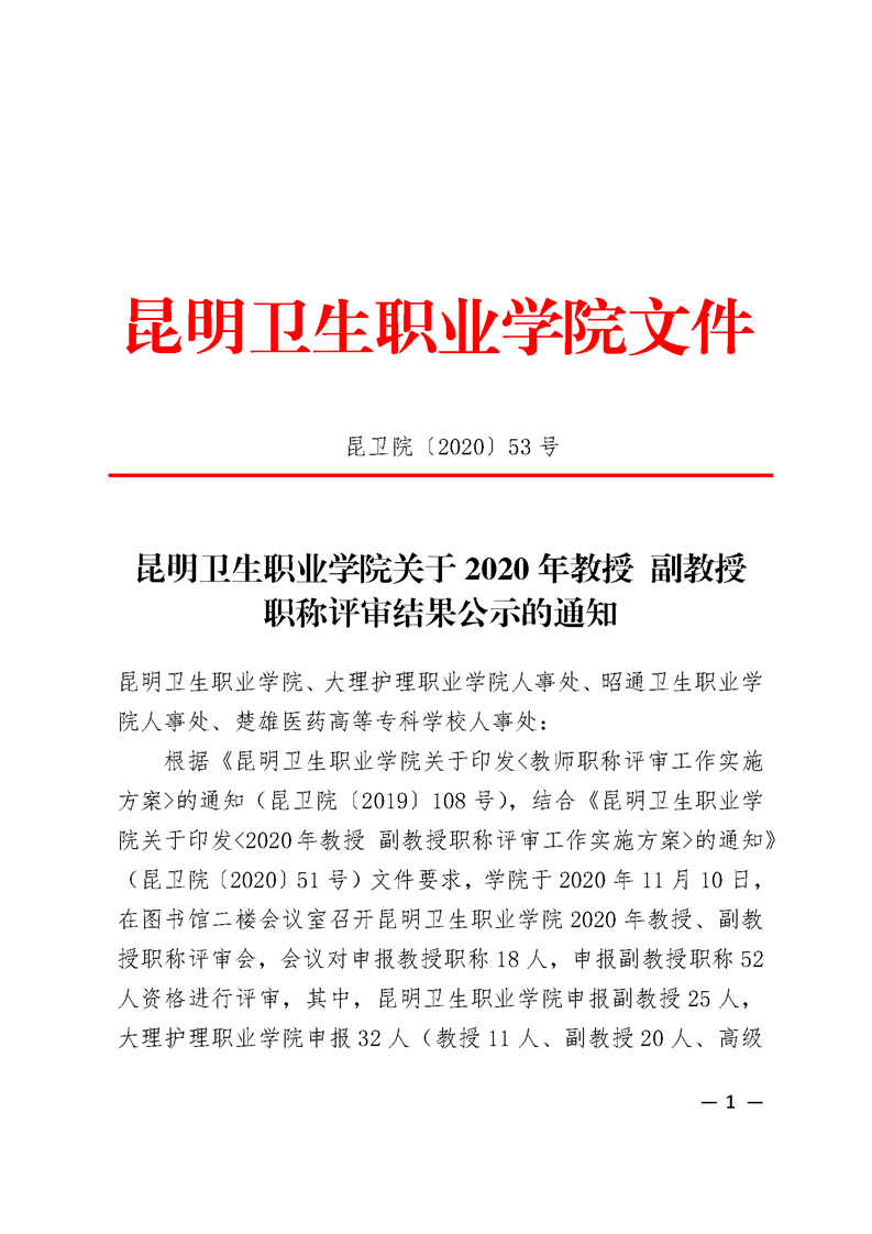 附件1 昆明卫生职业学院2020年度教授职称评审结果.pdf