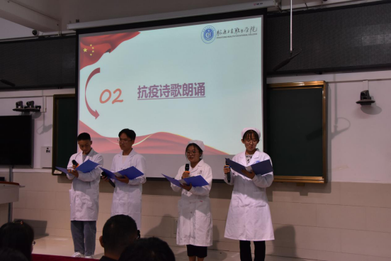 活动中,同学们通过观看抗疫视频、诗歌朗诵、合唱等方式,让我们铭记奔赴抗“疫”一线的每一位医护人员,他们是逆行的勇士。为了打赢新冠肺炎防控人民战争,他们离开年幼的孩子,道别年迈的父母,放弃难得的团聚时光……穿上防护服,他们是患者的亲人,是白衣天使,是国家和民族的希望。