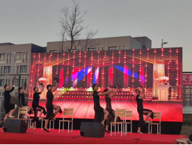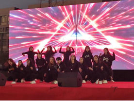 (礼仪队与校舞蹈队登台表演)