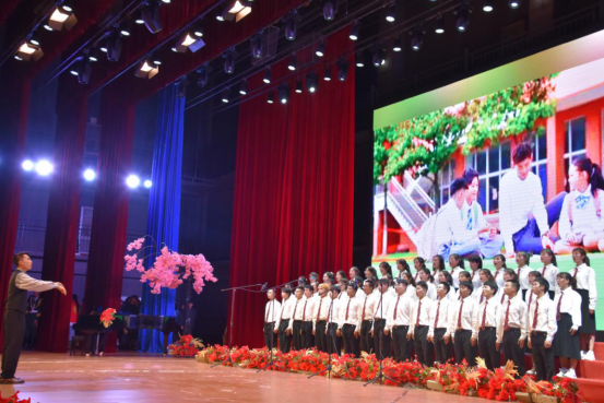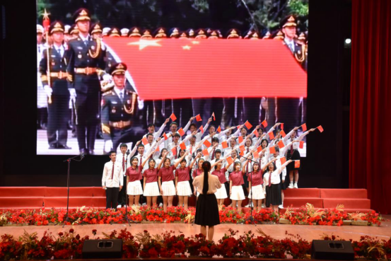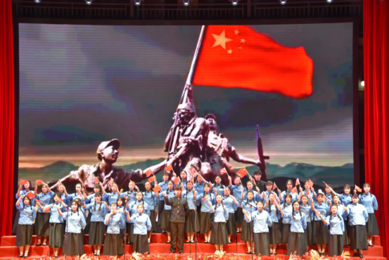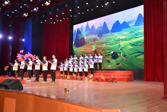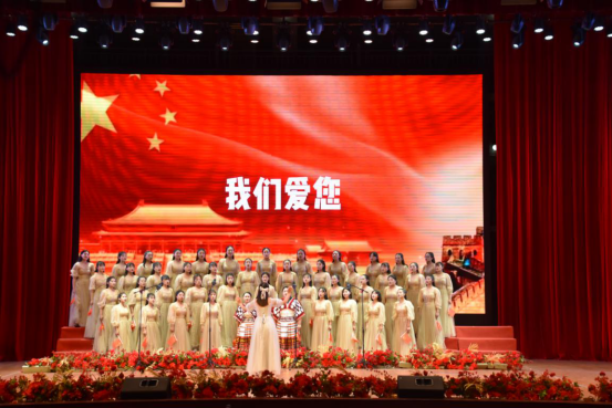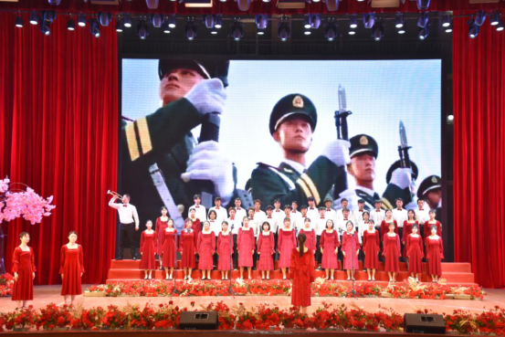 学生组依次带来了《在灿烂的阳光下》《初心难忘继往开来》、《唱支山歌给党听》《英雄》、《红旗飘飘》《祖国万岁》、《祖国不会忘记》《青春向党,奋斗强国》、《我爱你,中国》的合唱和朗诵,一曲曲感人肺腑的爱国歌谣,一句句真挚热情的爱国诵读,一个个俊俏挺拔的身影,抒发了昭卫学子对党的深挚热爱,表达了忠诚听党话、永远跟党走的强大信念和决心。