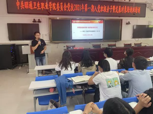 培训期间,市委教育工委党工委办郑绍云、韩梅同志,学院纪检科科长任晓东、人事科科长杜洪银,第一党支部副书记姚瑶,马克思主义学院教师梁波、马殿师等7位教师分别就《端正入党动机 做合格党员》《中国共产党章程》《中国共产党纪律处分条例》《习近平总书记“七一”重要讲话精神》《中国共产党百年奋斗历程和宝贵经验》《习近平谈治国理政》第三卷、《党的十九届五中全会精神》等内容对参训学员进行了全面系统、深入细致的培训。学员们在学习交流中表示,通过为期三天的培训,对党的性质、宗旨、纲领、光辉历程有了更全面的了解,对党章、党规、党纪有了更深刻的认识;通过培训,进一步端正了入党动机,坚定了理想信念。培训结束后,学员们一再表示,会把这次学习培训作为一个新的起点,在今后的学习和工作中,继续加强党的基本知识和理论知识的学习,提升自身素养,努力为党、为国奋斗终身。