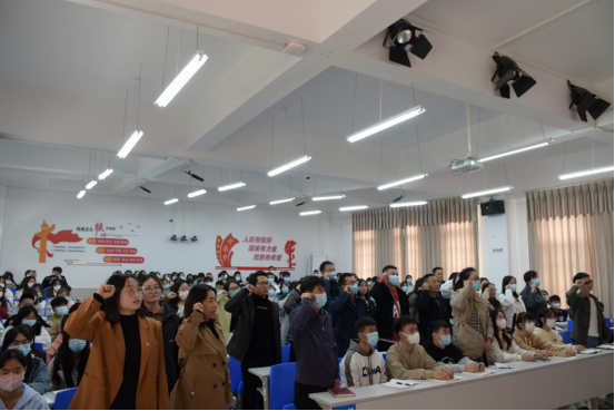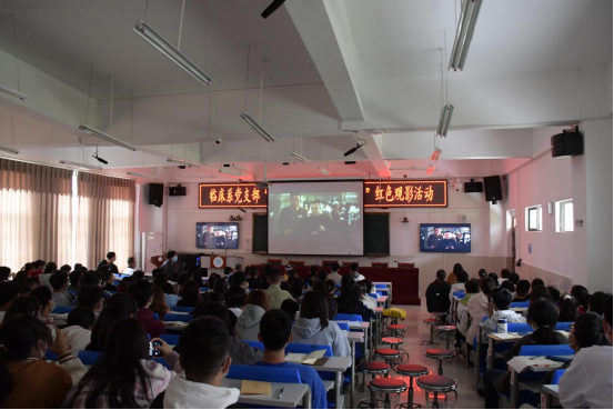 随后全体师生认真观看《建国大业》。影片以重庆谈判到中华人民共和国成立前夕为背景,再现了中国共产党领导的多党合作和政治协商制度的建立过程,充分反映了中国共产党团结奋斗、不惧艰难的革命精神。