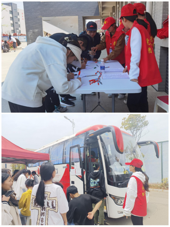 活动中,同学们积极响应,在青年志愿者协会志愿者的组织和指引下,有序填写献血登记表、测量血压、采样,检查符合要求后依次登上献血车,献出自己的那份赤忱热血。