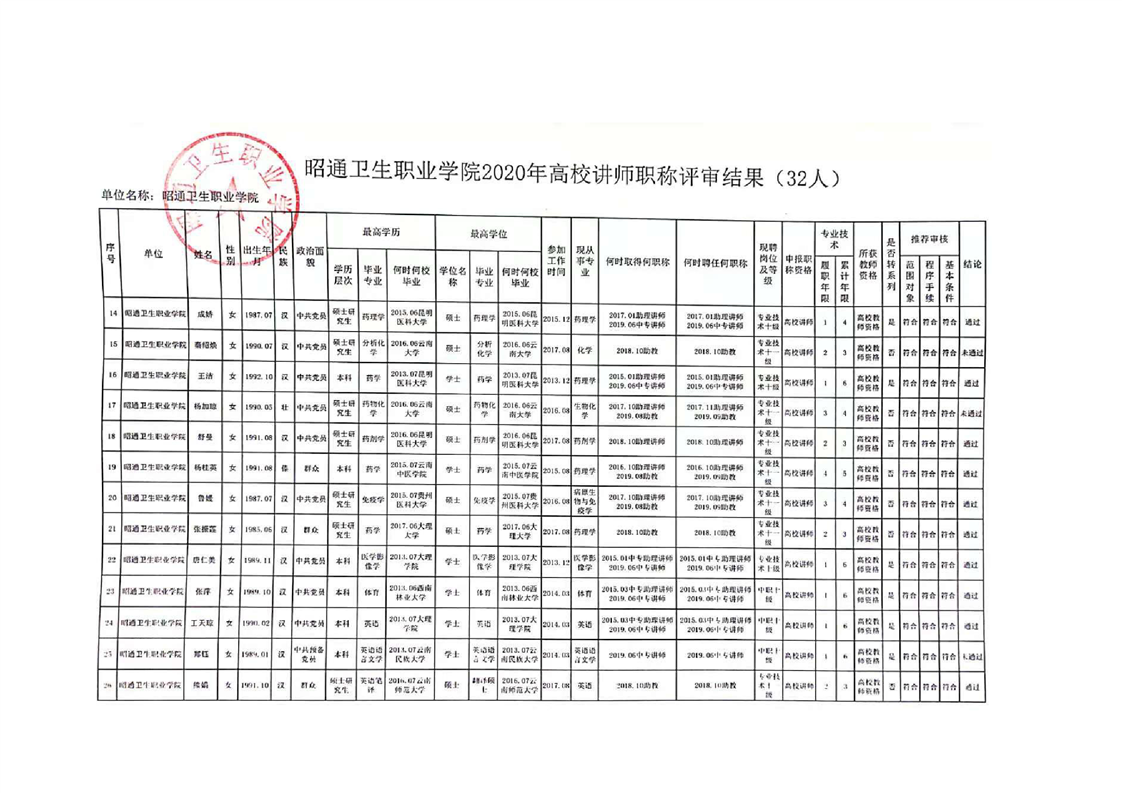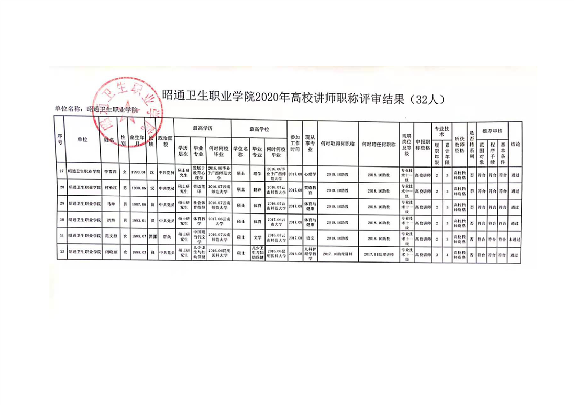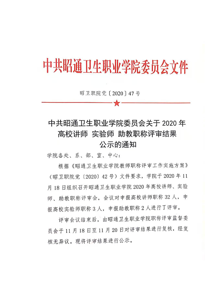 中共BB贝博艾弗森官网委员会关于2020年高校讲师实验师助教职称评审结果公示的通知