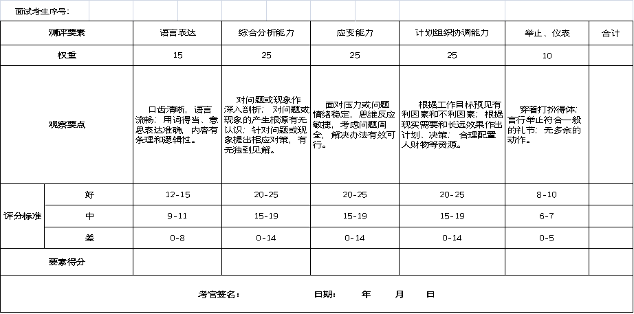 以结构化面试为考核形式的评定标准