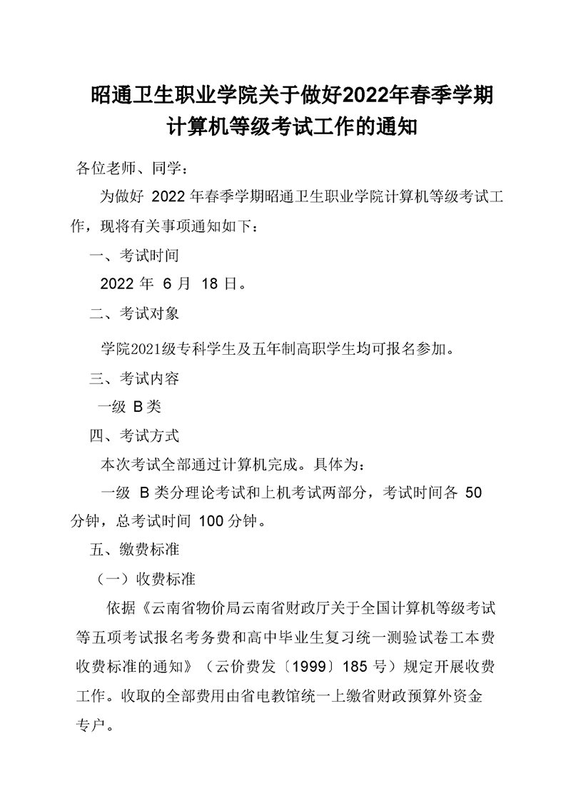 云南省教育厅关于做好2022年春季学期高等学校计算机等级考试工作的通知.pdf
