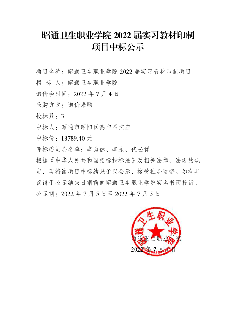 BB贝博艾弗森官网2022届实习教材印制项目中标公式