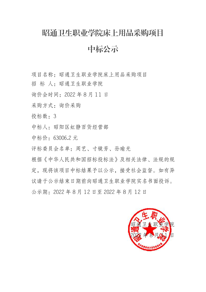 BB贝博艾弗森官网床上用品采购项目 中标公示