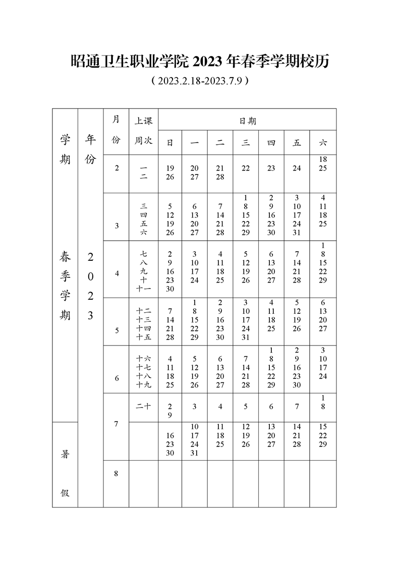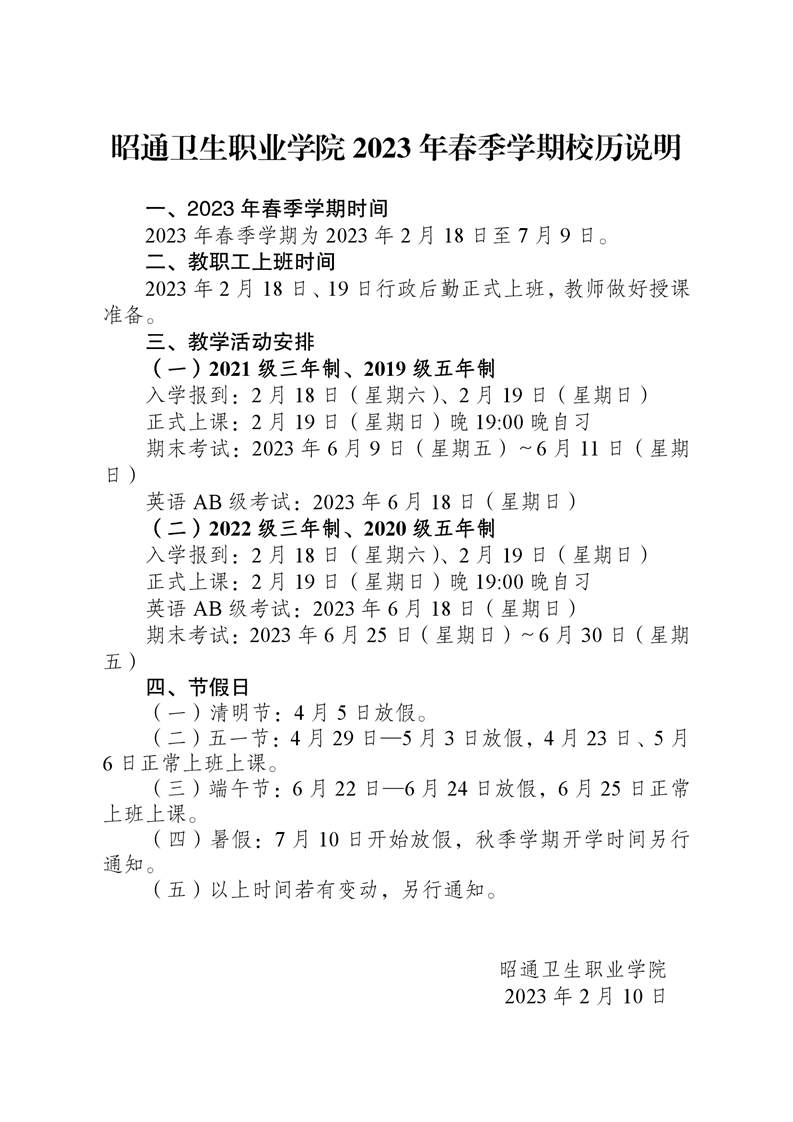 BB贝博艾弗森官网2023年春季学期校历
