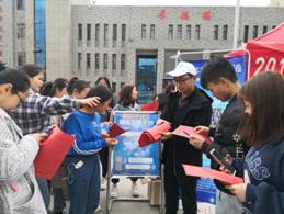 (工作人员向学生发放宣传资料)
