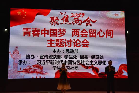 3月15日,正值2019年全国“两会”闭幕之际,BB贝博艾弗森官网习近平新时代中国特色社会主义思想学生学习社团(以下简称“学习社团”)在市职教中心学术报告厅举办了以“青春中国梦·两会留心间”的主题讨论会。学院在家领导贺飞、余清海、兰玉琼、宗大庆、孔德宽出席讨论会。学习社团的全体指导教师、部分教师代表和近千名同学参加活动。