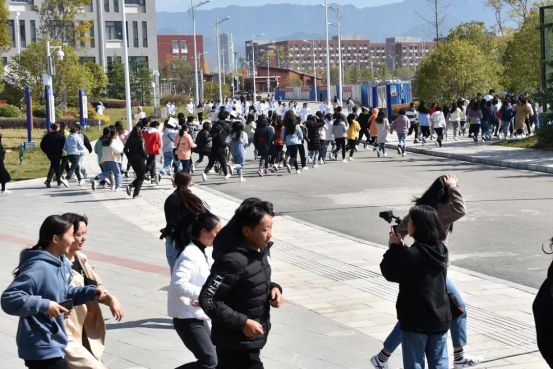 整个演练过程快速、有序、安全。学院3056名同学以及所有老师、工作人员在3分30秒内全部安全撤离到指定地点,演练取得圆满成功。
