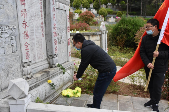 学院党委书记贺飞同志带领大家抚今追昔,深切缅怀革命先烈的丰功伟绩。贺飞希望全体同志要饮水思源,深切悼念流血牺牲、前赴后继的革命先烈,时刻铭记他们的不朽功勋;要继承先烈遗志,始终保持与时俱进、奋发有为的精神状态;要以党史学习教育为契机,利用好红色资源,传承好红色基因,以身作则,切实发挥党员、团员的先锋模范作用;要以踏石留印、抓铁有痕的劲头埋头苦干,在学院发展新征程上展现新作为。