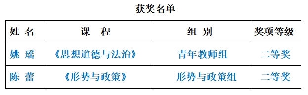近日,中共云南省委教育工委公布了2022年高校思想政治理论课教师教学比赛结果,BB贝博参赛的姚瑶、陈蕾两位教师,分别荣获青年教师组和形势与政策组教学比赛二等奖的优异成绩。