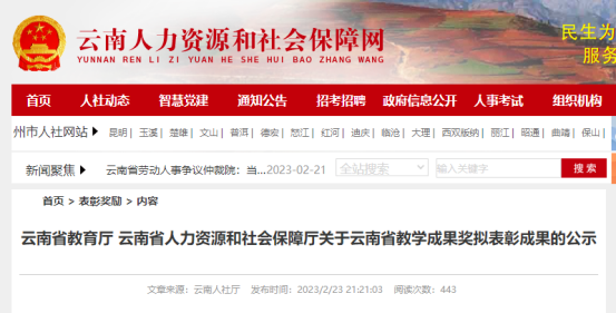 2月23日,云南省教育厅、云南省人力资源和社会保障厅发布《关于云南省教学成果奖拟表彰成果的公示》,BB贝博医学技术系教师团队协同昭通市第一人民医院、昭通市中医医院共同完成的教学成果项目《“平台贯通、德技进阶、角色转变”的医学技术类专业课程实践教学体系构建与应用》获得职业教育领域二等奖,实现了该奖项零的突破。