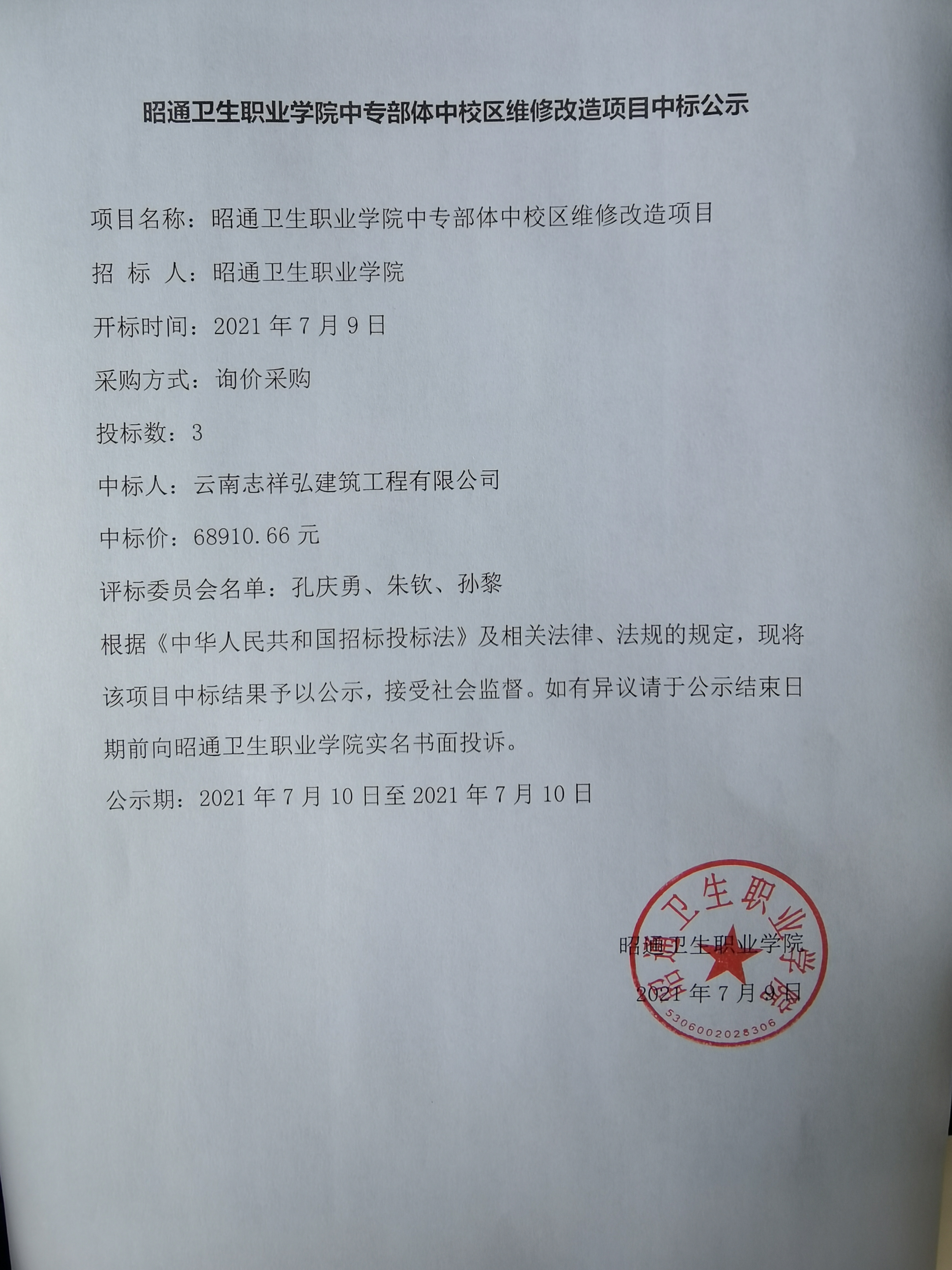 BB贝博艾弗森官网中专部体中校区维修改造项目中标公示