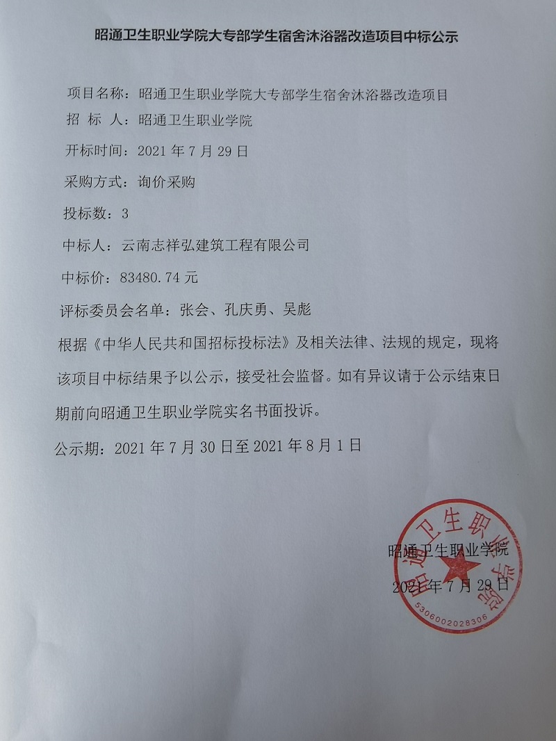 BB贝博艾弗森官网大专部学生宿舍沐浴器改造项目中标公示
