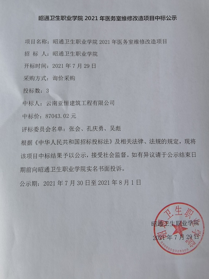 BB贝博艾弗森官网2021年医务室维修改造项目中标公示