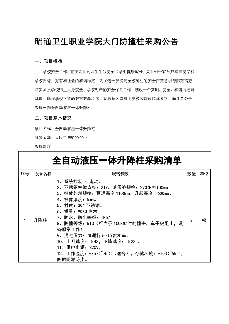 BB贝博艾弗森官网大门防撞柱采购公告