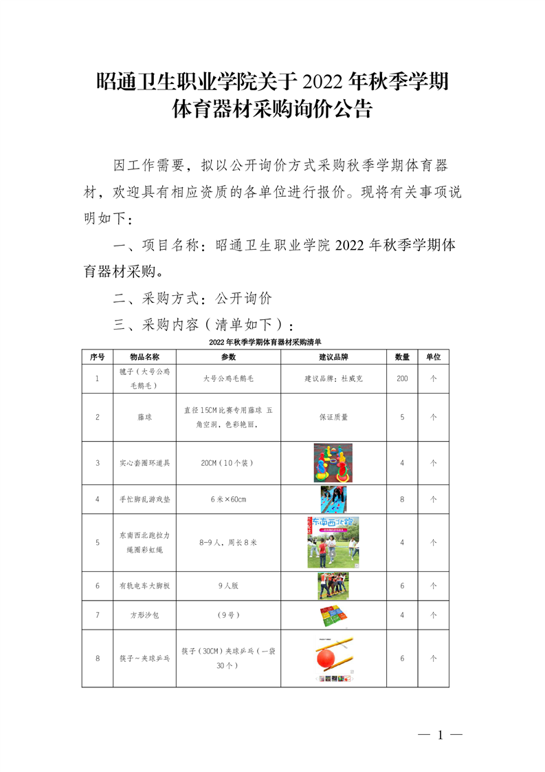 BB贝博艾弗森官网关于2022年秋季学期体育器材采购询价公告