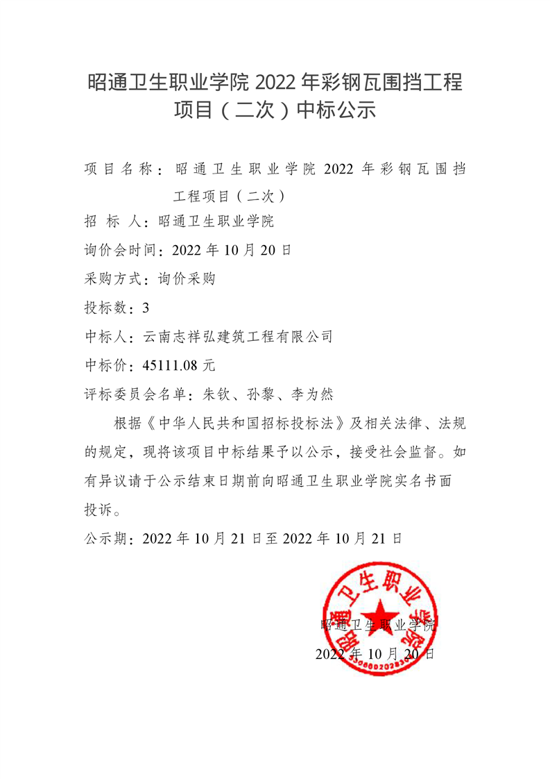 BB贝博艾弗森官网2022年彩钢瓦围挡工程项目(二次)中标公示