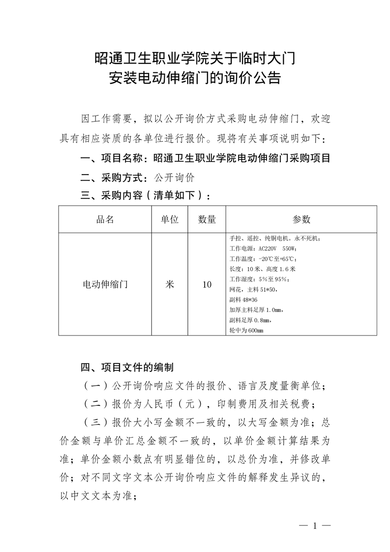 BB贝博艾弗森官网关于采购电动伸缩门询价公告
