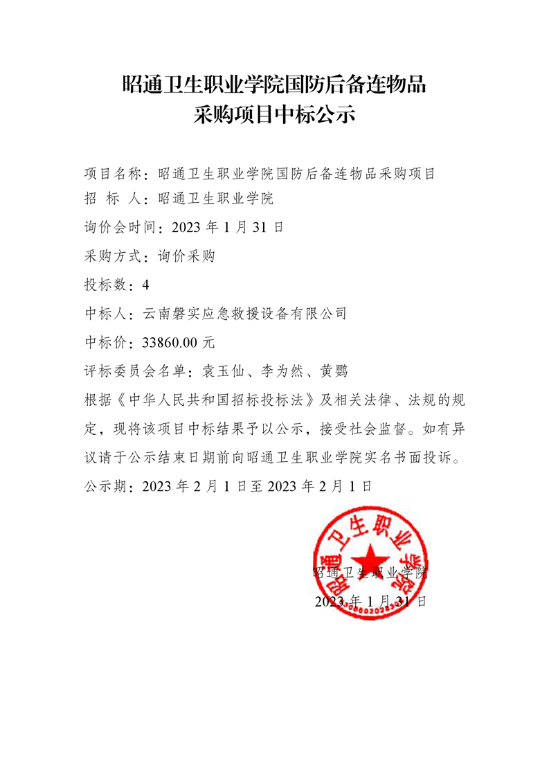 BB贝博艾弗森官网国防后备连物品采购项目中标公示
