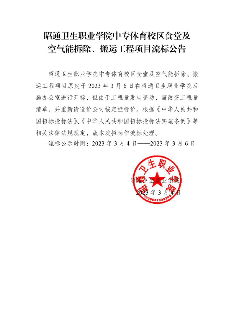BB贝博艾弗森官网中专体育校区食堂及空气能拆除、搬运工程项目流标公告