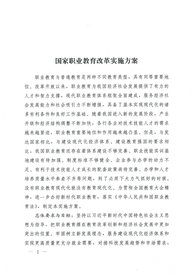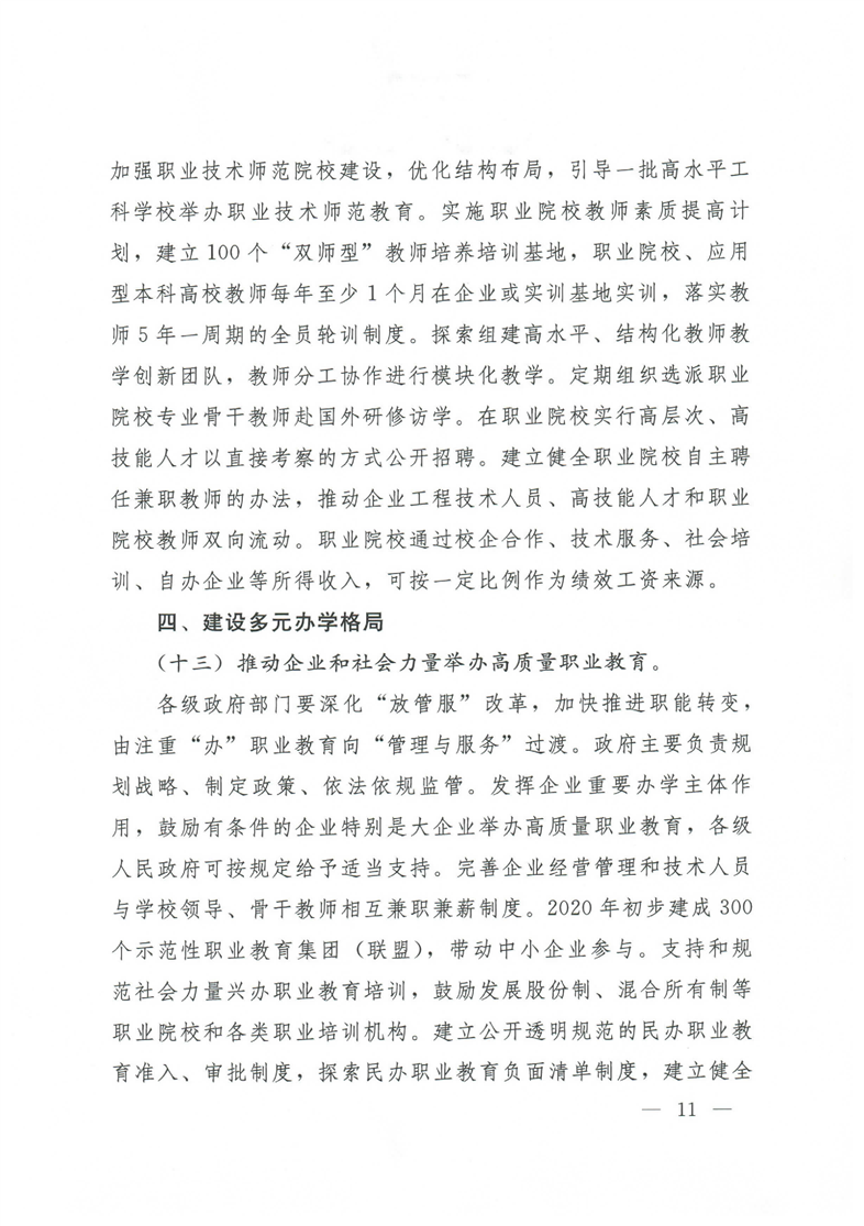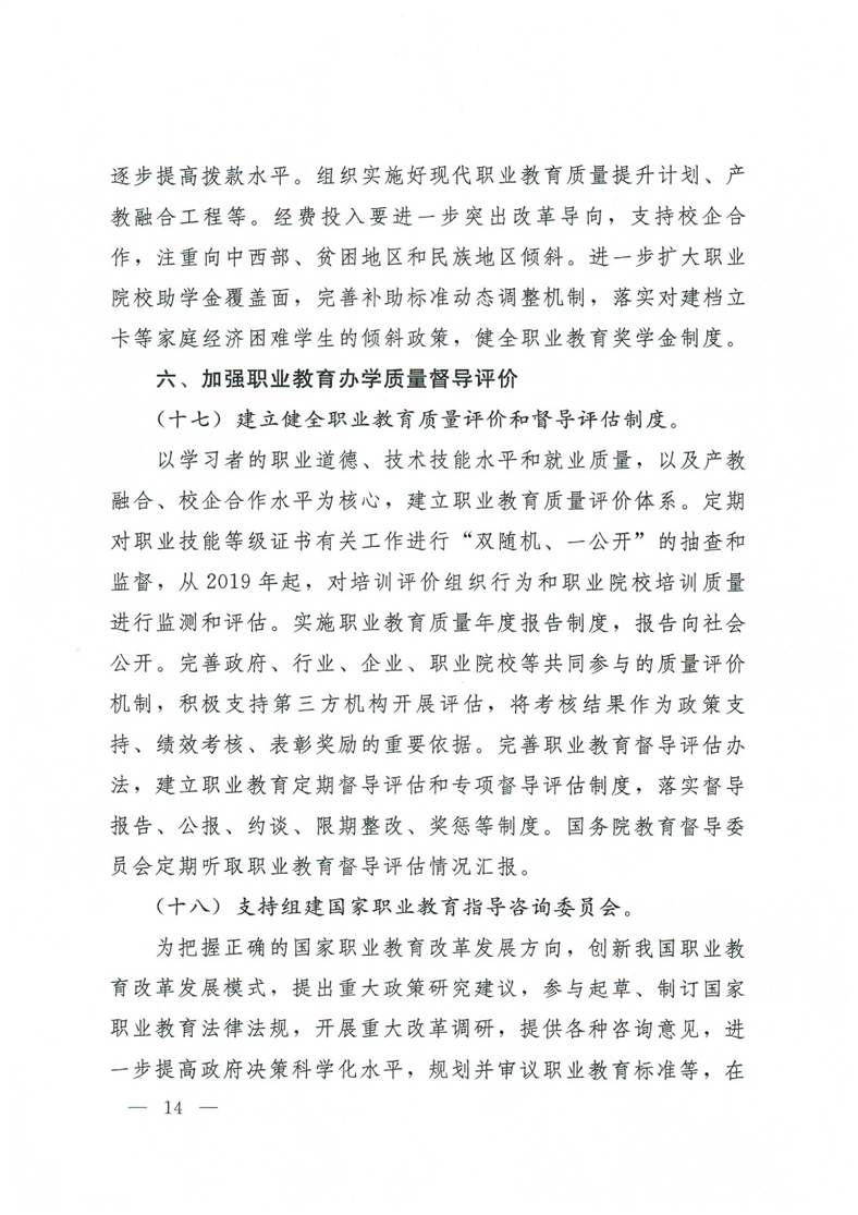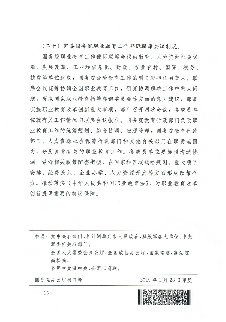 国务院关于印发国家职业教育改革实施方案的通知(职教20条)