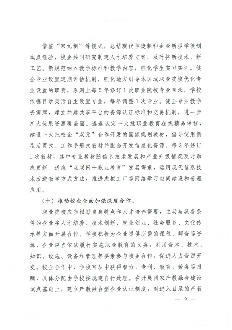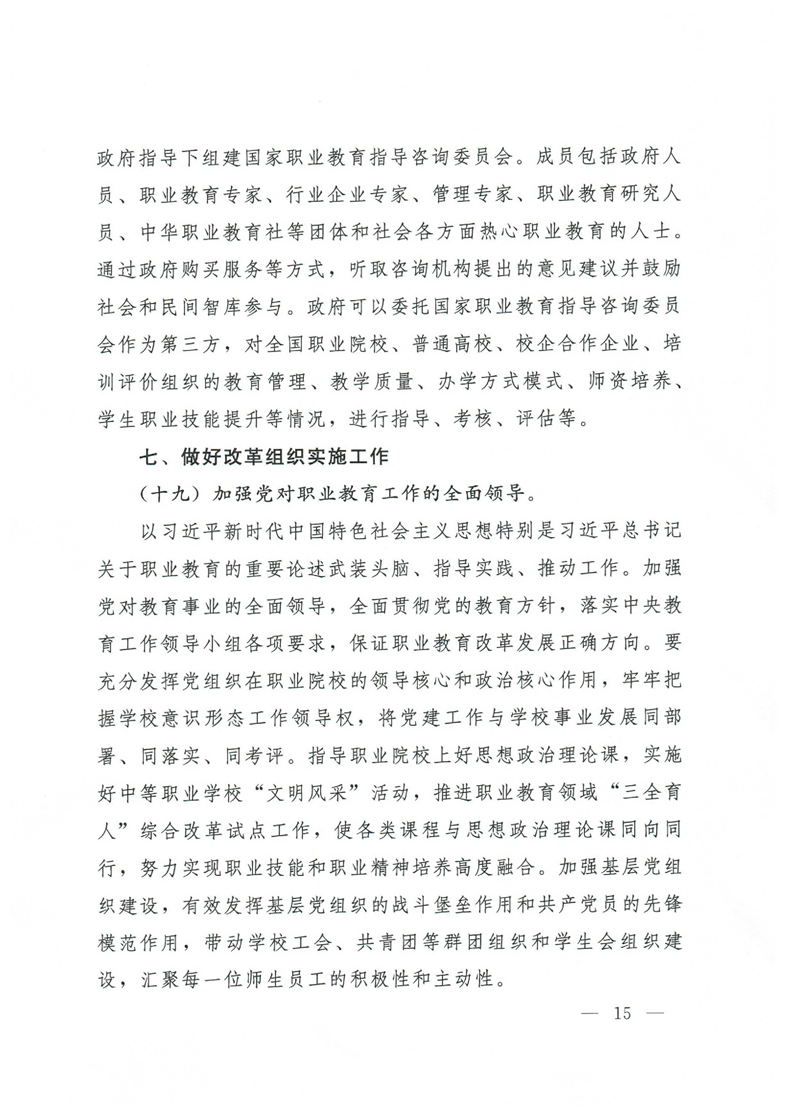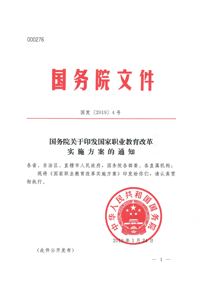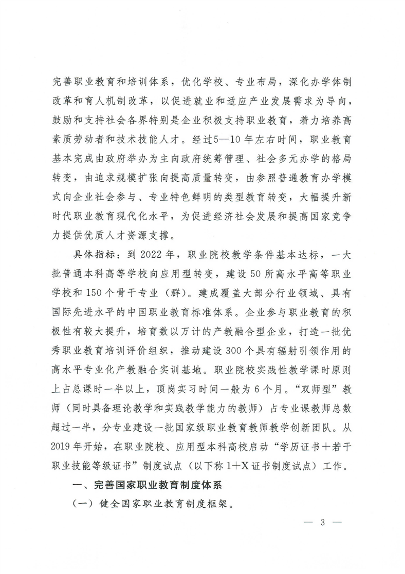 国务院关于印发国家职业教育改革实施方案的通知(职教20条)